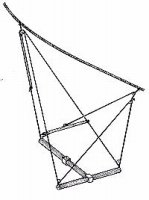 Welche Variante? Die erste Frage ist immer die, welche der gerade vorgestellten Variante denn zu empfehlen sei. Funktionieren tun sie alle und meine Vorlieben habe ich auch zum Ausdruck gebracht. Den Typ Rendsburg kann man besonders leicht einfädeln, ein Kreuz hingegen sehr leicht bauen. Das Dreick ist etwas komplizierter, weil man hier ein Stab mit Ösen genau einpassen muss. Dafür gefällt mir bei dieser Variante das Packmass. Zwischen diesen drei Varianten sollte man sich wohl zuerst entscheiden. Wie gross? Die zweite Frage geht immer in Richtung Grösse. Die Stäbe der original Picavet-Aufhängung waren mehr als 70 cm lang. Recht schnell wurde sie jedoch von den KAPern zerlegbar gestalltet. Da man sie häufig aus Aluprofilen gebaut hatte, ergab sich sehr oft eine Stablänge von 50 cm: ein einziges 1 m Aluprofil aus dem Baumarkt wurde einfach halbiert und zu einem Kreuz zusammengesetzt. Aber auch diese Kreuze sind noch zu sperrig. Wolfgang Bieck trieb dann die Miniturisierung auf die Spitze, sein kleinstes Modell passt in eine Hemdtasche. Ganz so klein muss man jedoch nicht gehen. Ich gebe daher mal so 30 cm Stablänge als Richtwert für erste eigene Versuche an. Wie lang? Die dritte Frage zielt dann immer auf die Schnurlänge. Die Antwort gibt die Praxis: Wenn ich die Aufhängung an beiden Aufhängepunkten mit langen Armen hochhebe, muss das Rigg frei schweben können, damit ich es auf der Drachenwiese frei tragen kann. Eine Kreuzvariante hat 8 Schnurschenkel, Rigg plus 1,80 m Höhe kann ich mit meinen Armen noch erreichen, also ca. 8 x 1,80 m ergibt ca. 15 m Schnur, die man einfädeln sollte. es gibt aber auch KAPer, die sich mit wesentlich weniger Schnurlänge begnügen. Rollen, Ösen? In meinen Zeichnungen habe ich überall Rollen eingezeichnet. Es gibt immer wieder Diskussionen, ob man wirklich überall Rollen braucht, ob man nicht auch Ösen verwenden kann oder ob man auch einfach an einigen Stellen einfach nur Knoten machen kann. Nein, es gibt keine abschliessende Antwort auf diese Frage. Hinter jeder Antwort steckt nämlich auch sehr viel Philosophie. Ich jedenfalls bevorzuge die Komplettlösung mit kugelgelagerten Rollen an allen Positionen. Hinten, vorne? Es ist fast egal, welcher Aufhängepunkt der Picavet-Aufhängung drachenseitig ist. Nur das Dreieck sollte man wie gezeichnet einhängen, bei allen anderen Varianten spielt es keine Rolle. Wie weit auseinander? Diese Frage, wie weit die Aufhängepunkte auseinander zu befestigen sind, kann man auch nicht in cm beantworten. Aber es gibt die Regel, dass das Dreick, das mit den Eckpunkten Rollen am Längsstab und Ring an der Schnurkreuzung gebildet wird, ein gleichseitiges sein soll. Je nach Leinenwinkel der Drachenschnur muss man hier vor Ort immer eine passende Einstellung finden.